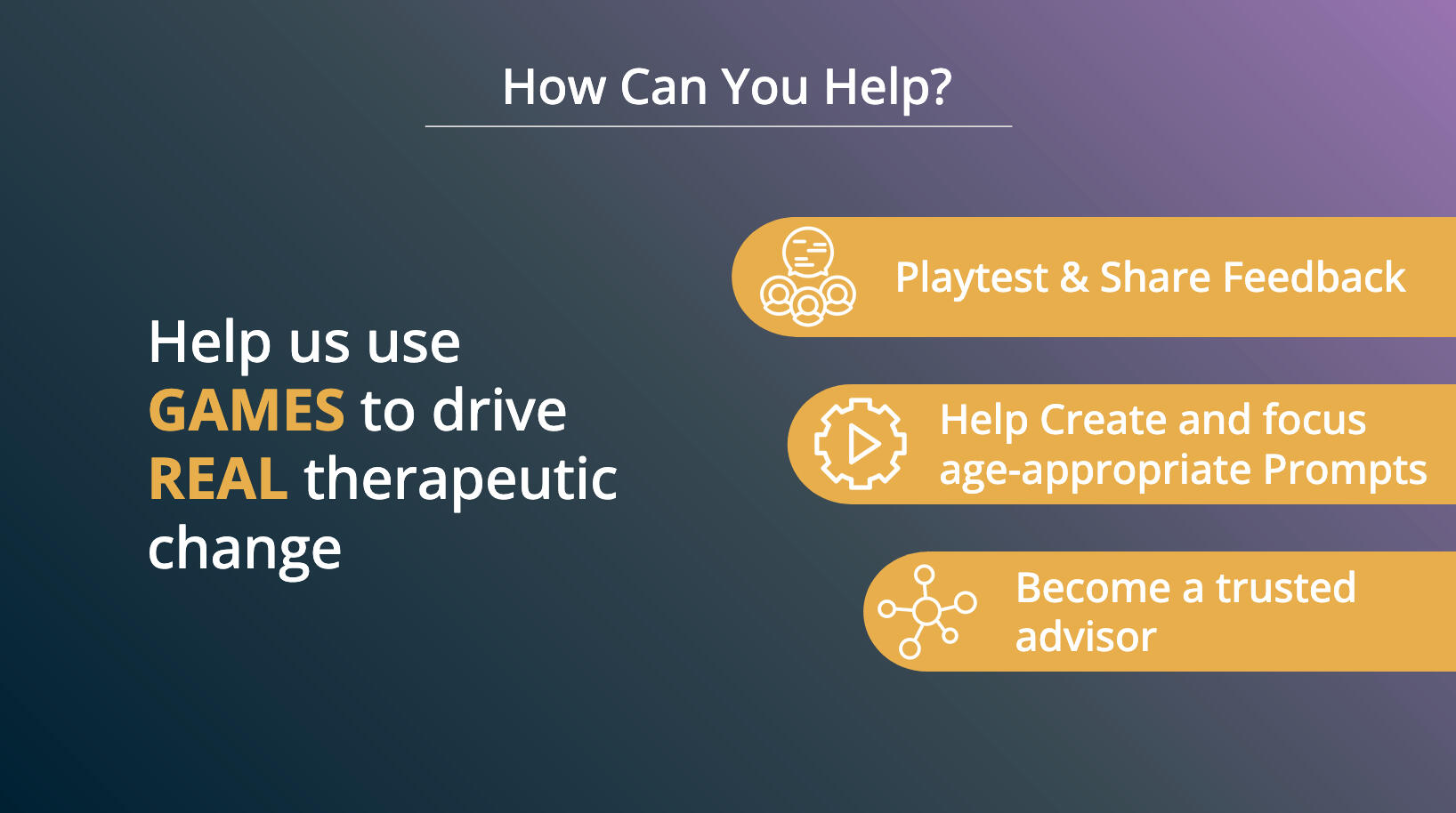 Want to help shape the future of emotional play? Join our playtest group for Beyond the Dragon’s Lair! You’ll get early access to the game, a chance to try it in real-world settings, and a voice in how it evolves. Whether you’re a therapist, educator, or caregiver, your insights will help us make this tool more impactful, accessible, and fun for the kids who need it most.